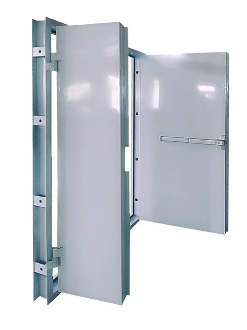 构造与材料:泄爆门按材质可分为钢制和铝制,门扇部分用型钢做骨架,内外两侧为钢板和铝板,中间填充岩棉,都是保温型的。