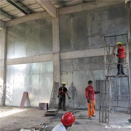 2安装竖龙骨:竖向龙骨100×40×0.6间距600mm,上下用龙骨钳连接天地龙骨上。 6.3.3安装内侧单面1220×2440×9mm金元泄爆板,板采用自攻丝固定于龙骨上,固定间距200mm,在板与每一个龙骨相接的地方都要固定。